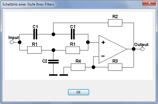 Dieses Filter wurde mit Hilfe der Software AktivFilter 3.2 berechnet.